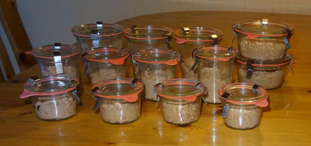 Abgesehen davon, dass ich unsere Gartenernte im Vorrat habe, gibt es auch von allem was wir sonst benötigen immer mindestens eine geschlossene Packung im Vorrat. Eine Tüte Mehl ist angefangen, eine geschlossene Tüte steht im Vorrat usw. Wie oben schon erwähnt, macht so ein Vorrat auch sehr flexibel. Ja, ich habe einen Plan, aber wenn der mal nicht passt, kann ich umswitchen.