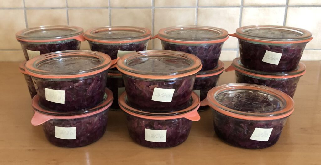 Der SWR hat Rotkohl vor Weihnachten getestet. Fertig gekocht und tiefgefroren, oder eingekocht kostete der zwischen 3,52 € bis 5,31 € pro Kilo. Ein frischer Rotkohlkopf kostet im Normalpreis 0,99 €/kg (im Angebot vor Weihnachten 0,79 €/kg). Auch wenn da noch die Kosten für die Äpfel, die Gewürze und die Energie dazu kommen, bin ich nicht bei 3,50 €/kg und der Rotkohl ist so, dass er uns schmeckt, was wohl bei dem getesteten nicht so der Fall war.