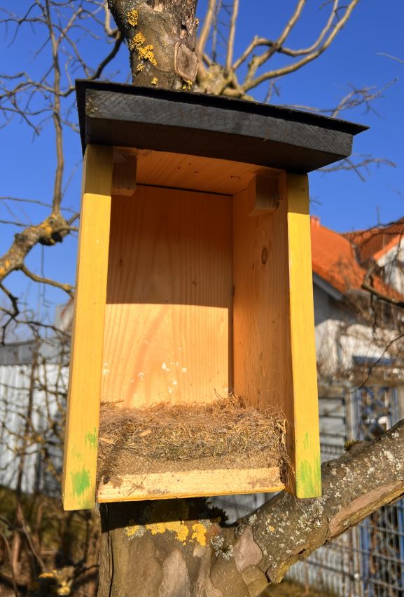 Am Mittwoch hatten wir eine kurze Zeit mit Sonnenschein und die Temperatur lag so bei +5°C. Weil die Vögel schon singen, habe ich die Vogelkästen sauber gemacht, bevor mir der kalte Wind die Händen steif gefroren hat.