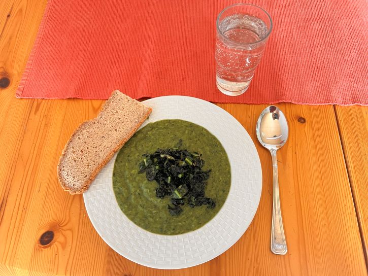 Eine Suppe aus den Stielen und Blattachsen vom Federkohl