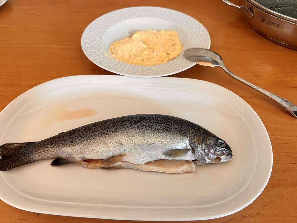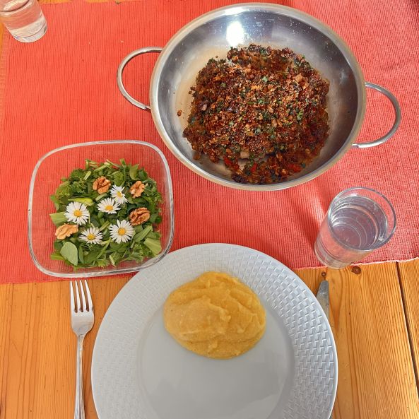 Schlemmerfisch mit Polenta und Salat aus dem Garten