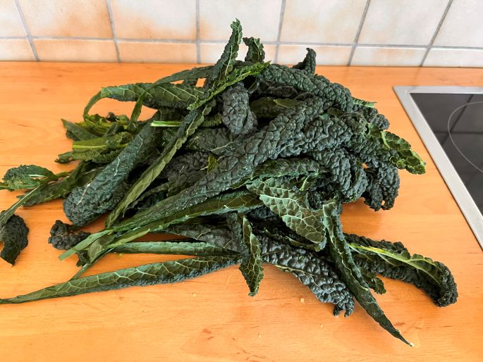 Grünkohl ist noch reichlich im Garten. Damit hatte ich mehr Erfolg, als ich erwartet habe. Die „friesische Palme“ übersteht aber auch den Sommer, wenn man ihn lässt. Ich werde einige vielleicht stehen lassen, damit die hohen Pflanzen den niedrigeren Pflanzen im Sommer Schatten spenden. In Zeiten der heißen, trockenen Sommer muss man auch beim Gärtnern umdenken. 😉
