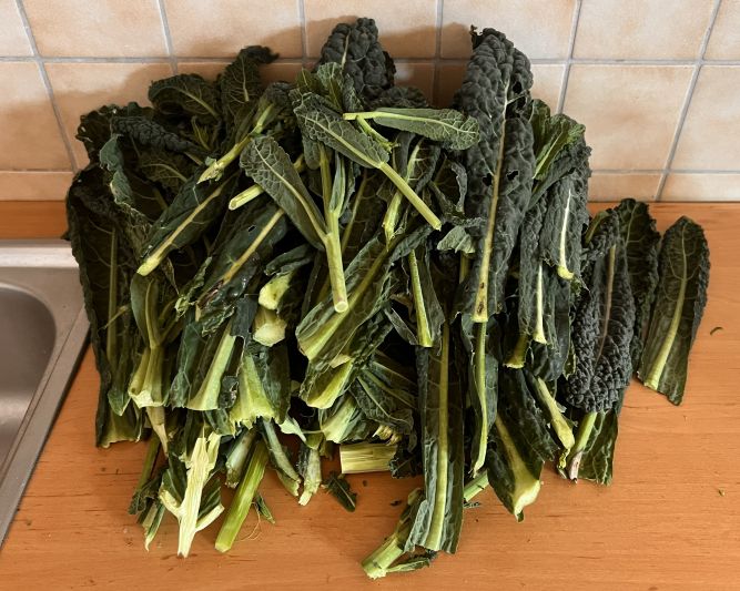 Der Federkohl musste jetzt geerntet werden, bevor er in die Blüte geht.