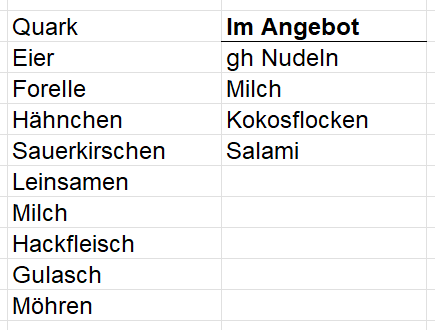 Nach dem Essenplan und der „Inventur“ unserer Vorräte, habe ich das Notwendige dafür auf Einkaufsliste geschrieben.