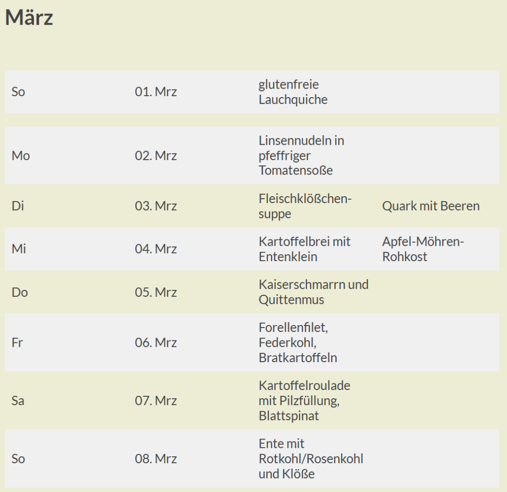 Unseren Essenplan hatte ich hier schon veröffentlicht