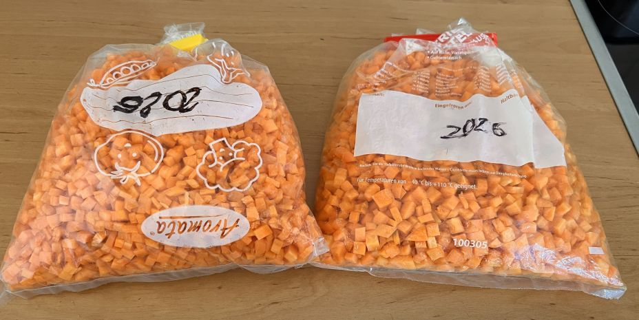 Möhren waren noch mal im Angebot. Die meisten davon habe ich küchenfertig eingefroren.