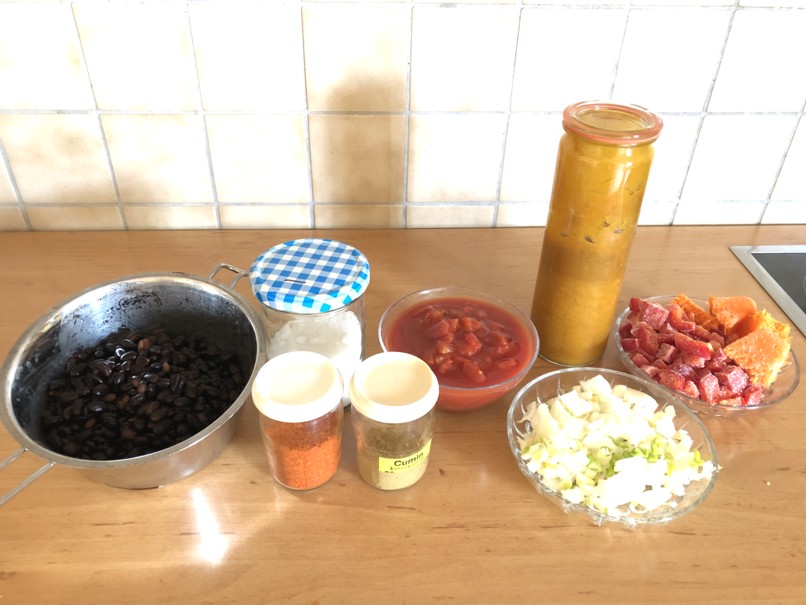 Zugegeben, für deutsche Verhältnisse klingt es wie eine wilde Mischung, wenn man Bohnen, Kürbis, Paprika und Tomaten gemeinsam in einen Topf tut. Ich war auch skeptisch und gerade deshalb habe ich es ausprobiert.