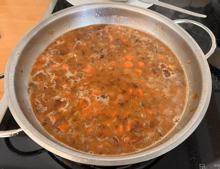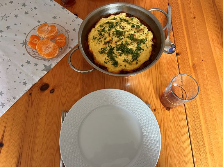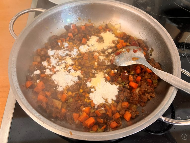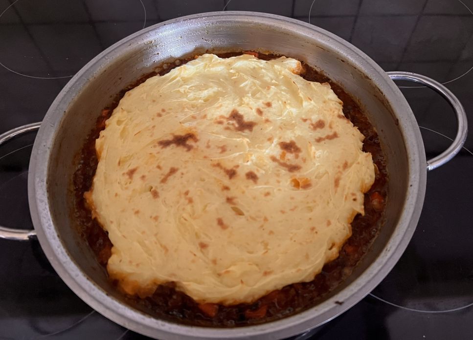 Eigentlich ist es ein Ragout, was mit einem Kartoffelbrei überbacken wird. Ich dachte immer Kartoffelbrei mit Ragout, kennt man ja. Was soll bei Cottage Pie da anders sein? 🤔