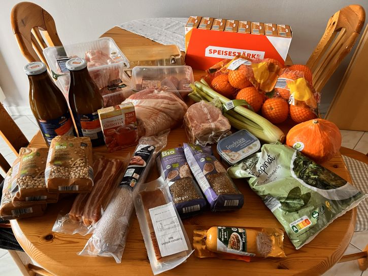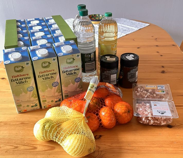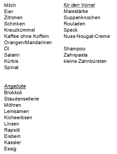 Außer dem, was auf dem Zettel stand, habe ich noch Milch und Leberwurst als MHD-Waren bekommen.