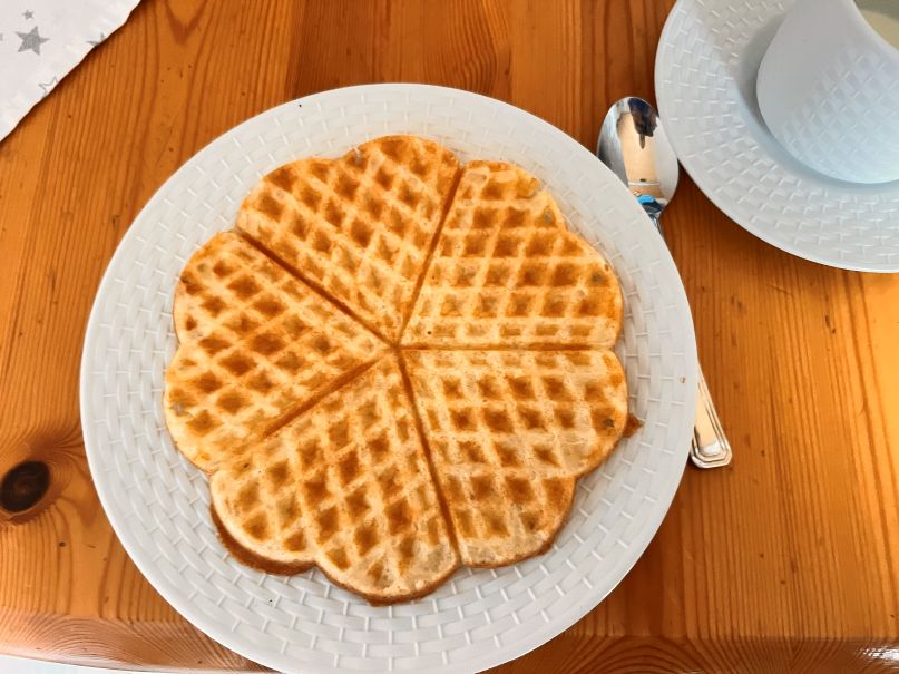 Diese Waffeln sind echt schnell gemacht und kosten nur etwa 10 ct pro Stück. Der Hausherr isst sie mit Marmelade, ich meistens so wie sie aus dem Waffeleisen kommen – am besten heiß.