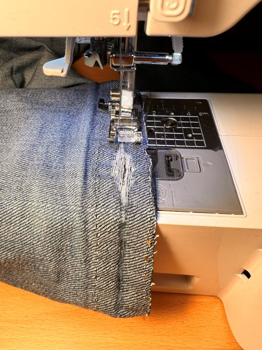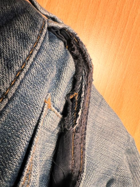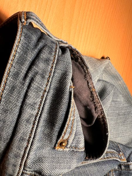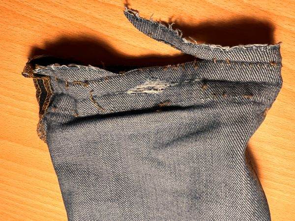 Nun, diese hier hat schon ein paar Jährchen auf dem Buckel und bevor ich ein weiteres Mal in die Waschmaschine gebe, wollte ich eben mal noch die Hosentasche reparieren, die ausgerissen war.