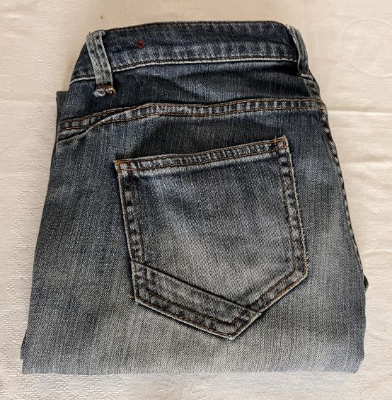 Im Second Hand kann ich nach Jeans in einer bestimmten Größe schauen und habe verschiedene Schnitte, Farben und Hersteller auf einer Kleiderstande zur Auswahl. Gut wenn man eine Konfektionsgröße hat, die scheinbar viele „verwachsen“, denn ich habe schon oft Hosen für kleines Geld bekommen, die wie neu aussahen.