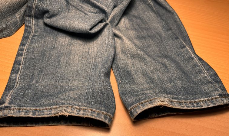 Dann das Hosenbein entlang der ersten Bruchkante abgeschnitten (knapp 1 cm).