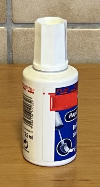 Für so etwas ist eine lösungsmittelhaltige Korrekturflüssigkeit super. Die kostet nicht viel, man hat keinen großen Pott Farbe rumstehen und sie hält sich ewig. (Wenn die mal fester wird, mache ich ein oder zwei Tropfen Nitroverdünnung rein.)
