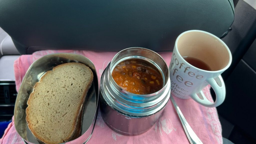 Hauptsächlich im unteren Fach stehen die Mittagessen für die nächsten 5 Tage. Damals hatte ich noch nicht so viel eingekocht, aber eben vorgekocht.