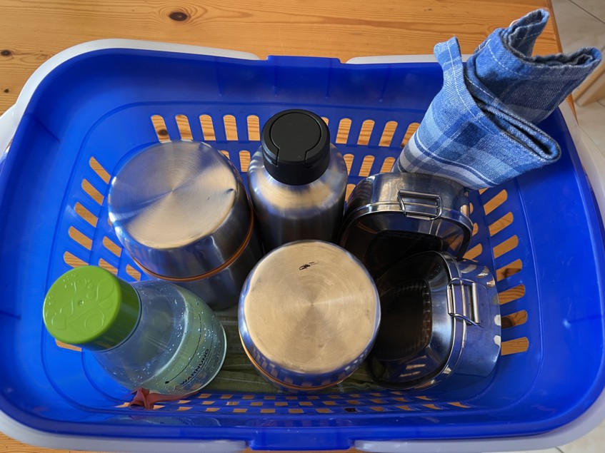 Wir verwenden keine Küchenrolle, keine Alufolie, keine Frischhaltefolie, kein Einwegbesteck, keine Pappgeschirr, usw. Das spart Geld und Müll. Es gibt Alternativen, die Oma noch kannte.